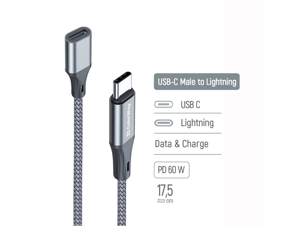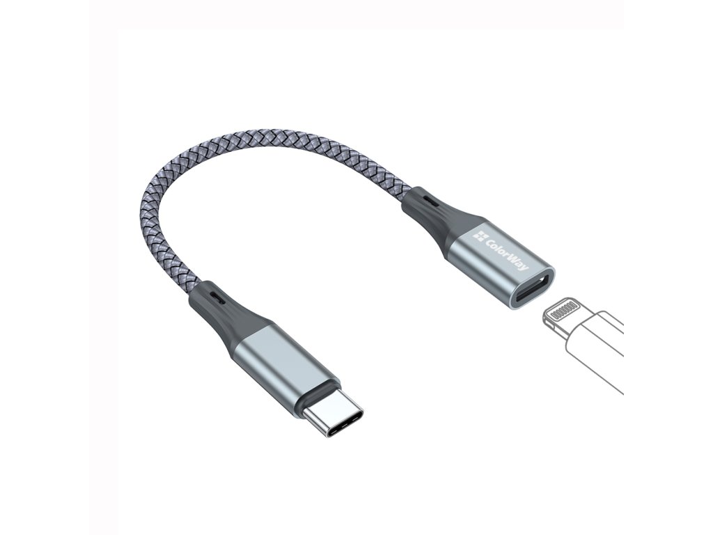 Adaptér ColorWay USB-C na Lightning 17,5 cm sivý (CW-AD-CL)