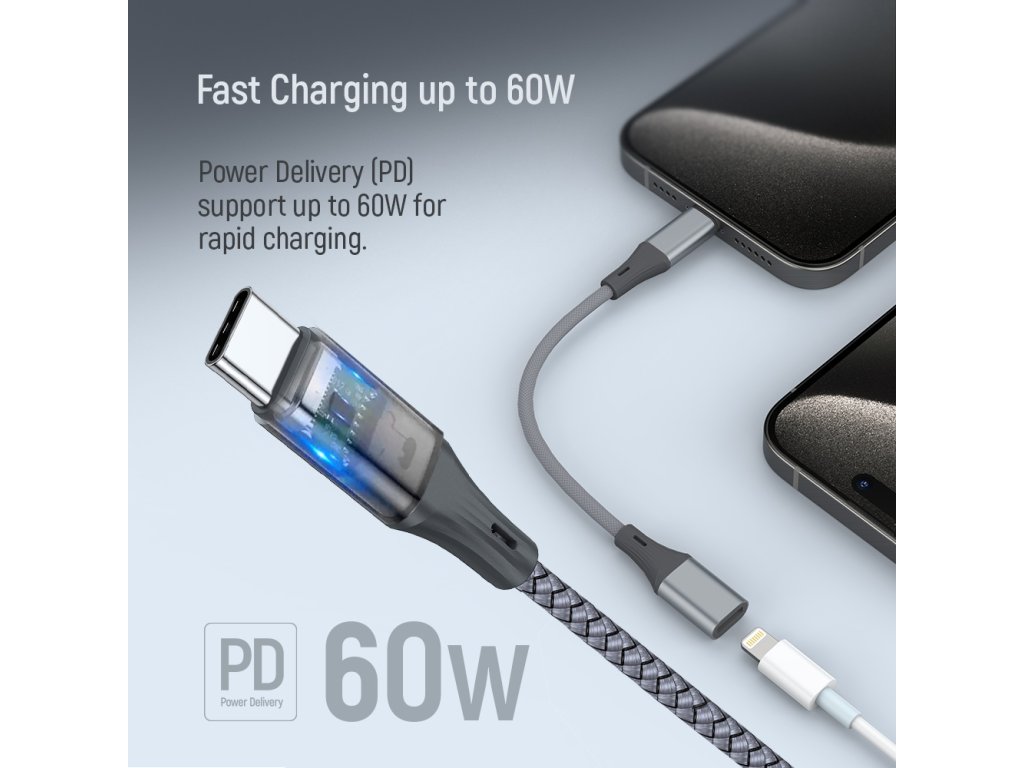 ColorWay USB-C na Lightning adaptér umožňuje jednoduchú konverziu Lightning kábla pre použitie so zariadeniami, ktoré majú USB Type-C port. Je to ideálne riešenie pre rýchle nabíjanie a synchronizáciu dát Apple zariadení pomocou USB-C nabíjačiek.