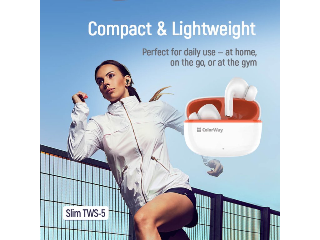 Kompaktné a štýlové bezdrôtové slúchadlá ColorWay Slim TWS-5 sú určené na pohodlné počúvanie hudby, telefonovanie a komunikáciu cez mobilné zariadenia. Vďaka technológii Bluetooth 6.0 sa rýchlo a stabilne pripoja k smartfónom, tabletom alebo počítačom a poskytnú vám úplnú slobodu pohybu bez káblov.