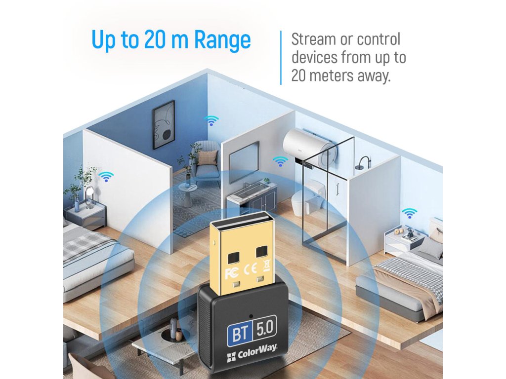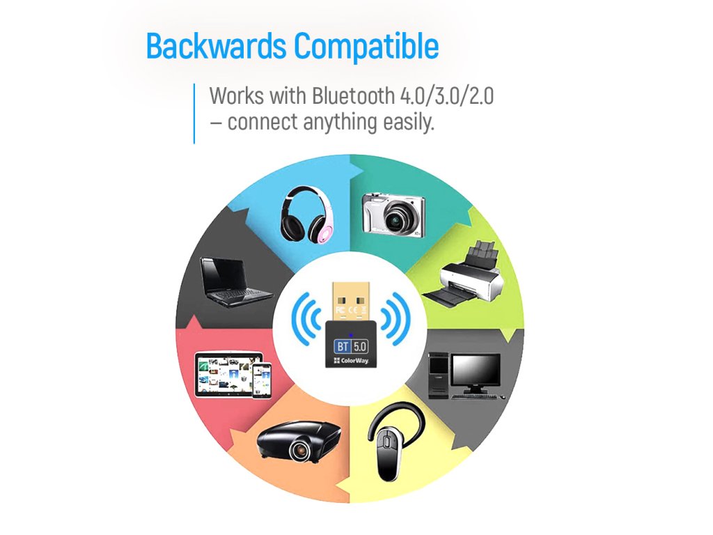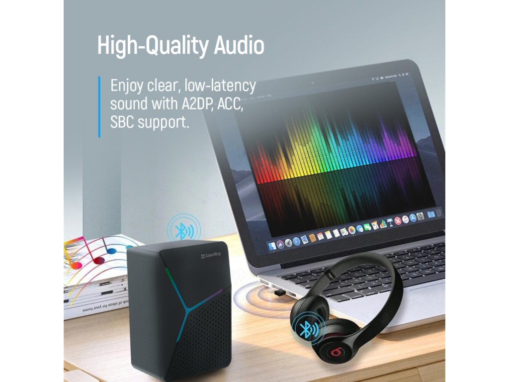 Premeňte svoj počítač alebo notebook na skutočné bezdrôtové centrum pripojení s adaptérom ColorWay Bluetooth 5.0. Pripojte bezdrôtové slúchadlá, reproduktory, myši, klávesnice a ďalšie Bluetooth zariadenia v priebehu niekoľkých sekúnd.
