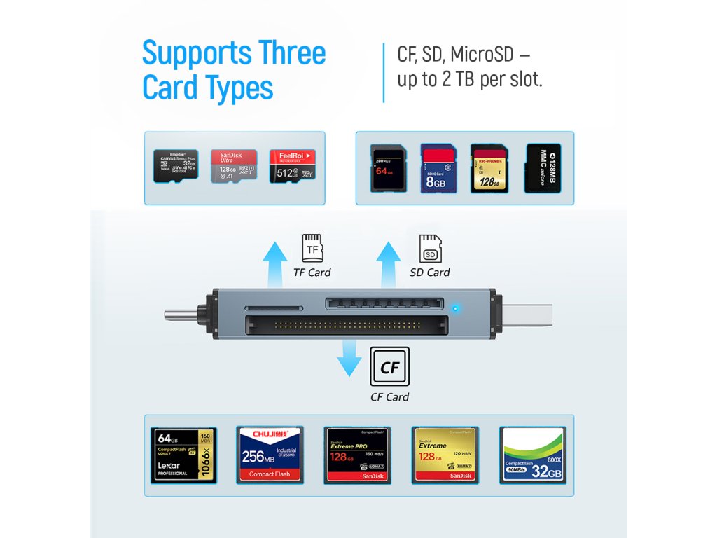 Podpora CF, SD, MicroSD (TF) kariet až do 2 TB