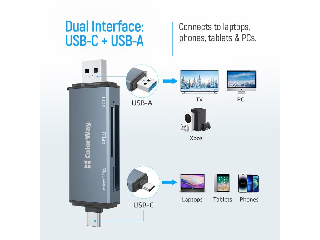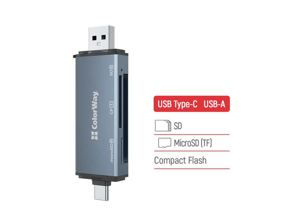 Názov: Čítačka kariet ColorWay USB 2.0/USB-C na CF/SD/MicroSD