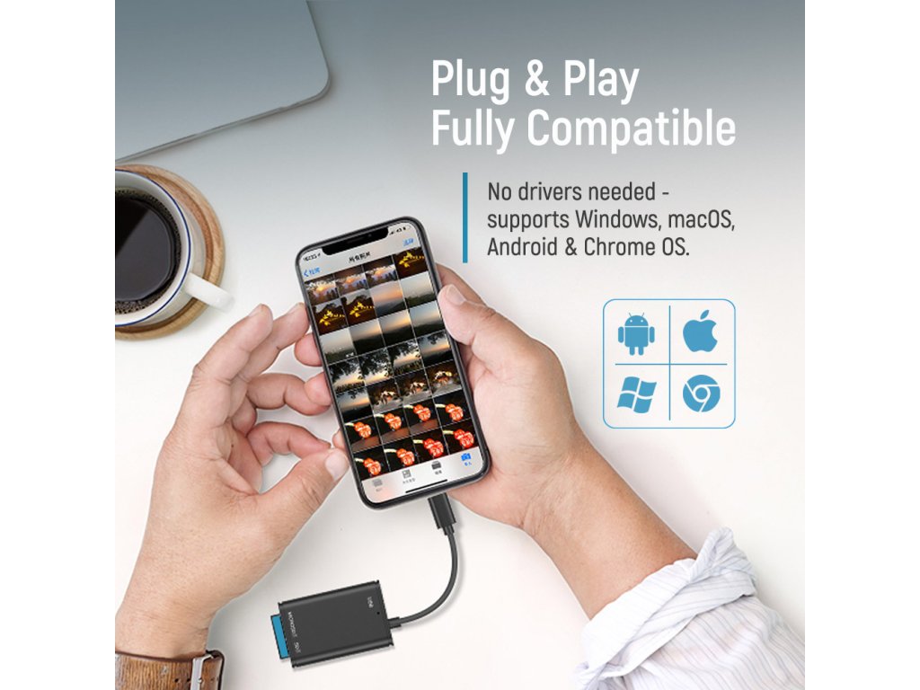 Výstupné porty: 1 × USB-A 3.0 (5 Gbps), 1 × SD slot, 1 × TF slot
