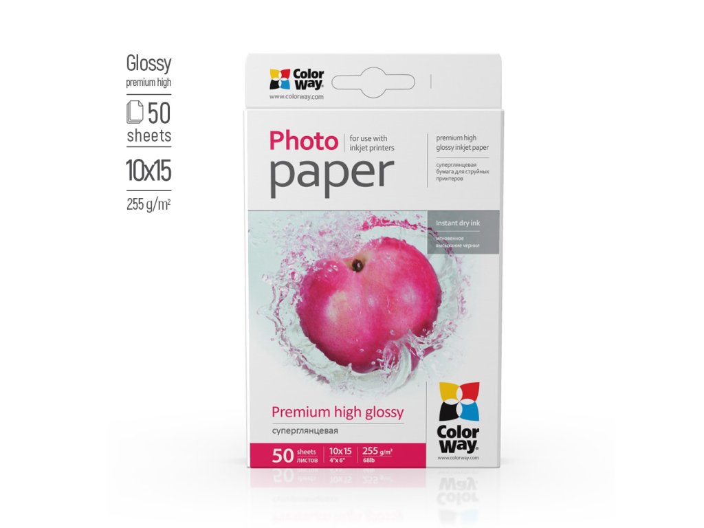Fotopapier ColorWay Premium Super lesklý Mikroporézny 255g/m²,50ks,10x15 (PSG2550504R)