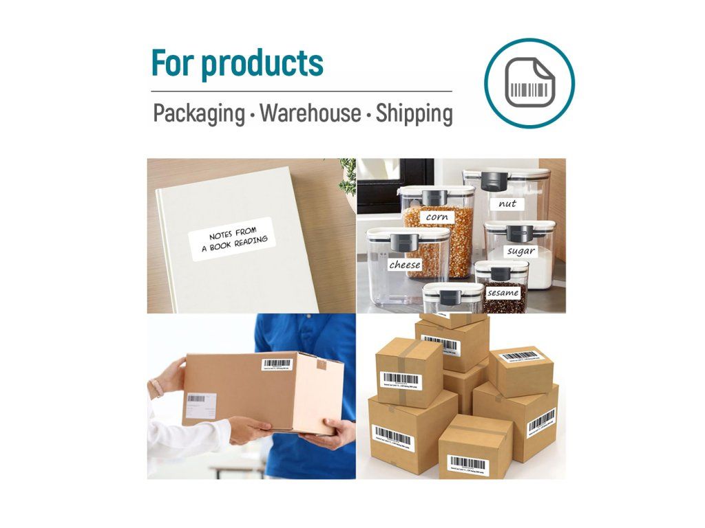 - Rýchloschnúci povrch: Atrament na papieri schne okamžite, čo zabraňuje rozmazaniu a umožňuje okamžitú manipuláciu so štítkami.