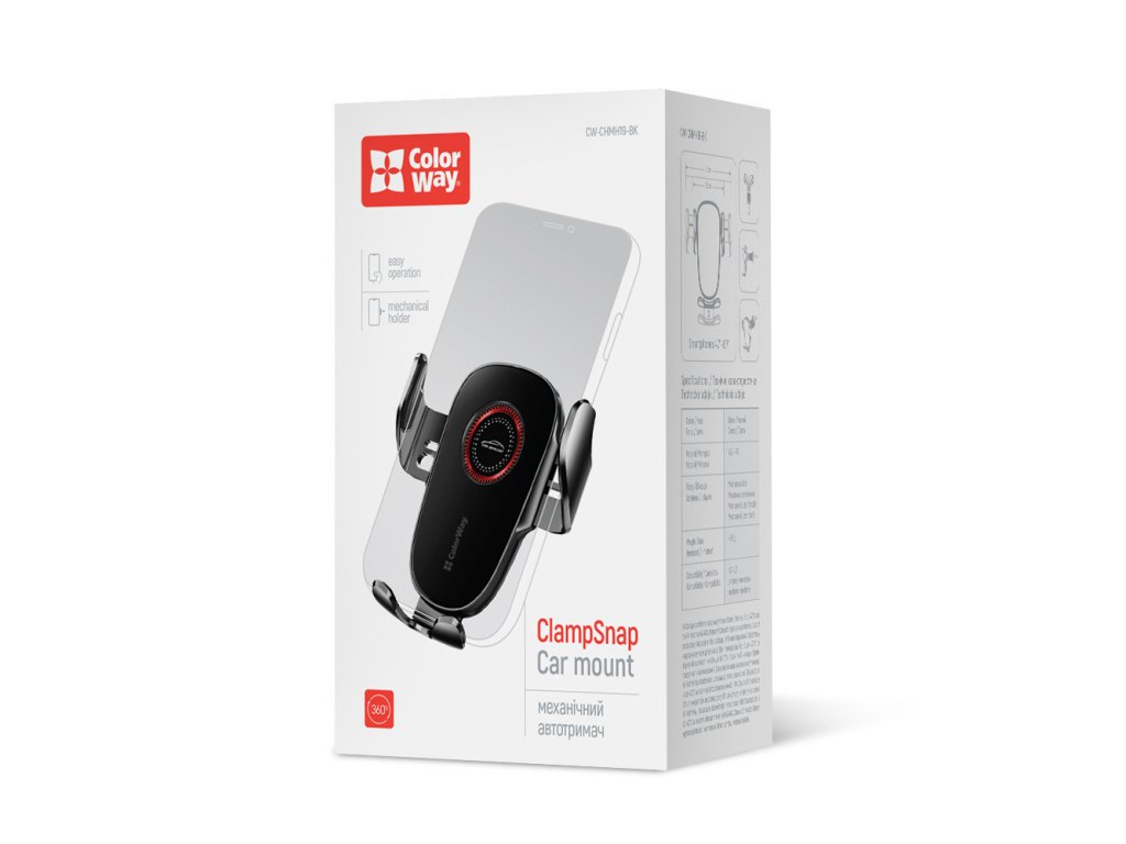 ColorWay ClampSnap Holder je mechanický držiak do auta, ktorý ponúka rýchlu a spoľahlivú fixáciu vášho smartfónu počas jazdy. Tento držiak do auta využíva sofistikovaný trojuholníkový systém uchytenia – synchronizované bočné ramená v kombinácii so spodnou oporou zaisťujú perfektnú stabilitu telefónu aj na rozbitých cestách.