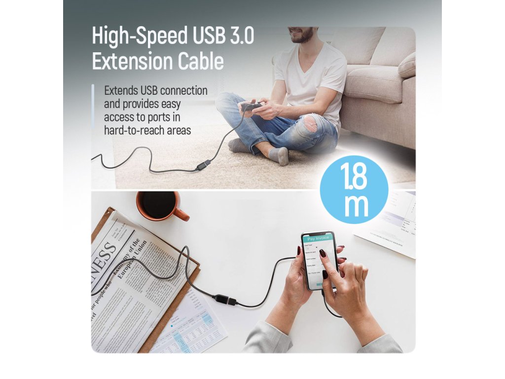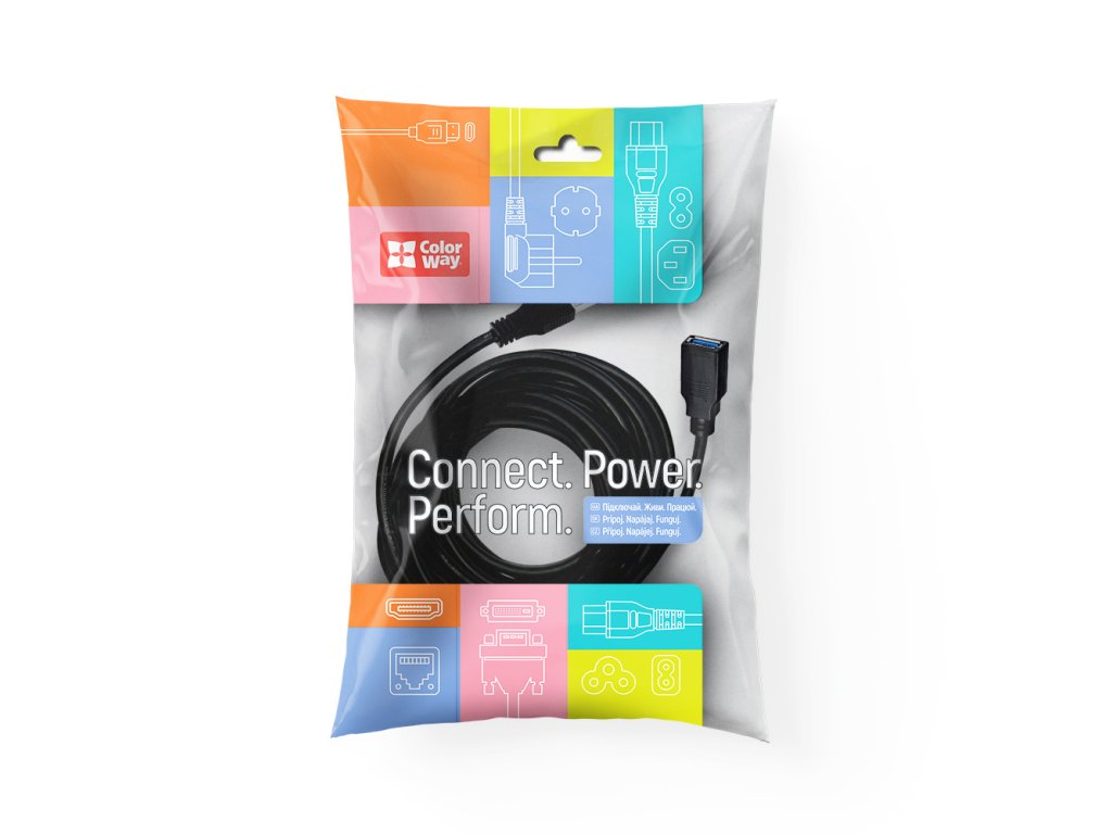 ColorWay USB 3.0 AM/AF predlžovací kábel je kvalitné riešenie na zväčšenie dosahu medzi USB-A zariadeniami alebo na pohodlný prístup k USB portom, ktoré sú umiestnené na ťažko dostupných miestach. Je ideálny na pripojenie externých diskov, flash diskov, tlačiarní, webkamier, klávesníc, myší a ďalších USB zariadení.