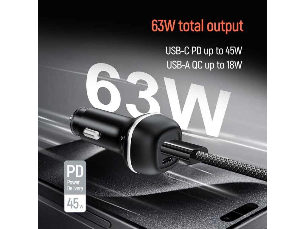 Názov: Autonabíjačka ColorWay 2USB (USB-C PD 45 W + USB QC 3.0 18 W) (63 W), čierna
