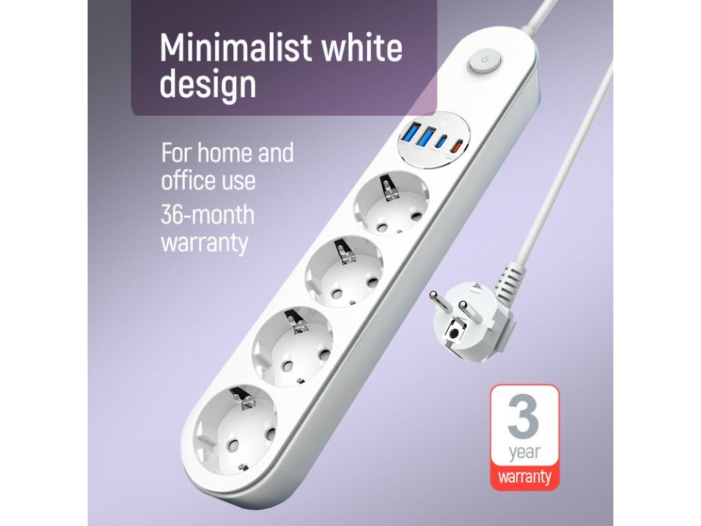 Moderný predlžovací kábel ColorWay s prepäťovou ochranou kombinuje klasické elektrické zásuvky a rýchle USB nabíjanie v jednom zariadení. Umožňuje pohodlné pripojenie domácich a kancelárskych spotrebičov a zároveň nabíjanie viacerých mobilných zariadení bez potreby adaptérov.