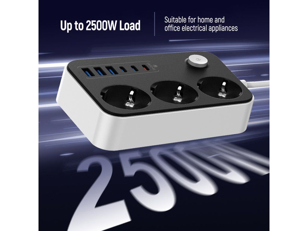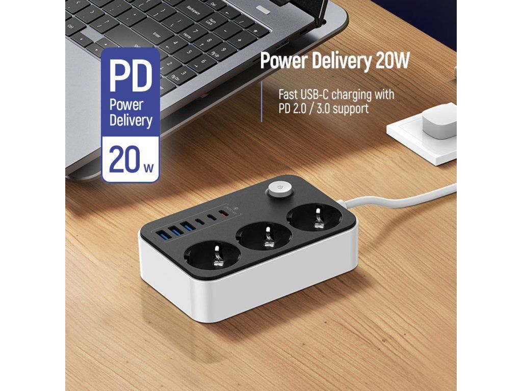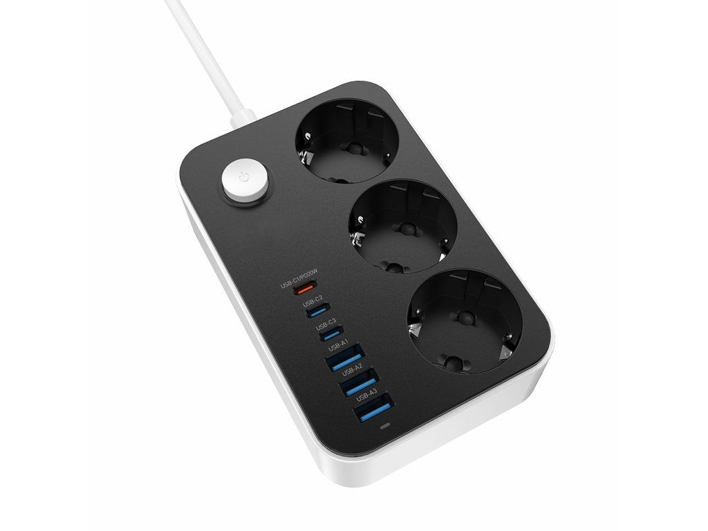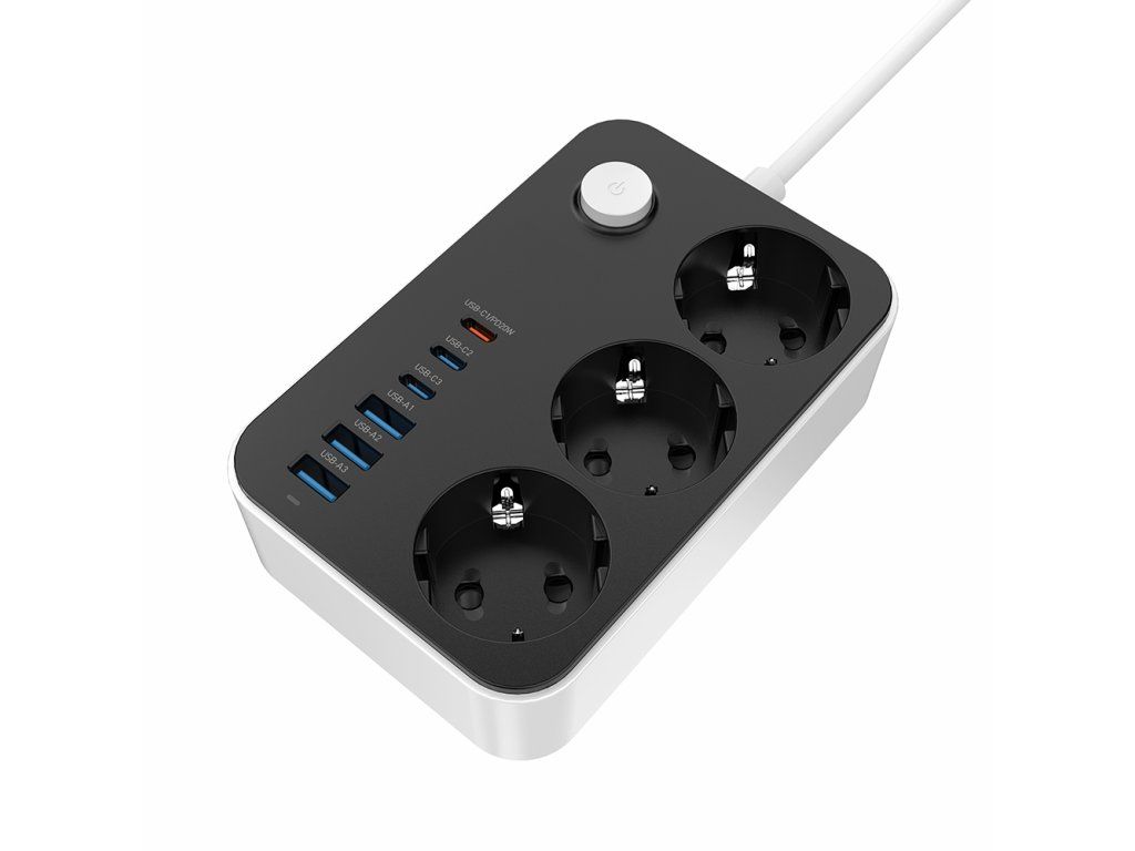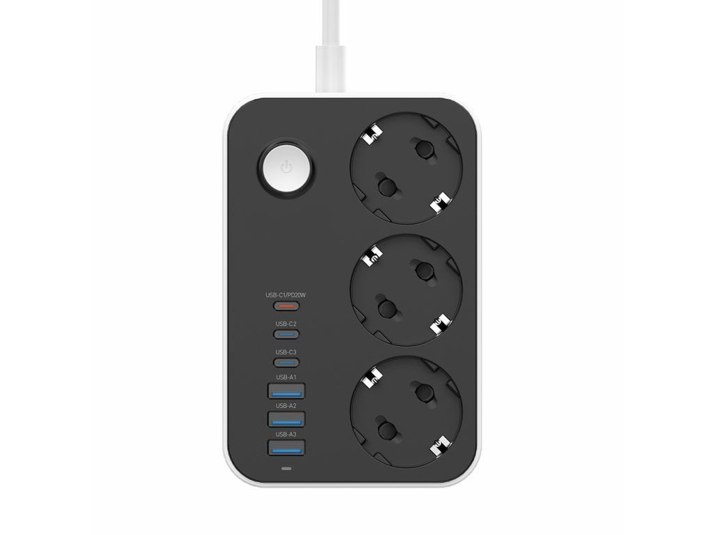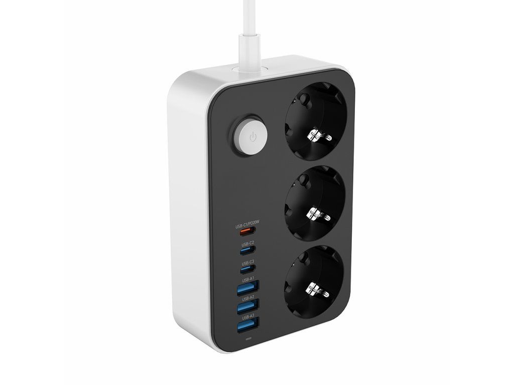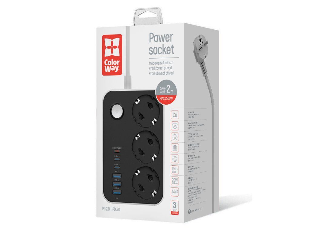 - Názov: Predlžovací kábel ColorWay 3 zásuvky / 6 USB (3× USB-A + 3× USB-C PD 20W), 2 m