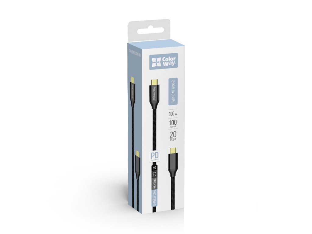 Kábel ColorWay Type-C - Type-C USB3.2 (20Gbps 4K PD 100W) Gen2, 5.0А, 1m, čierny (CW-CBPDCC062-BK)