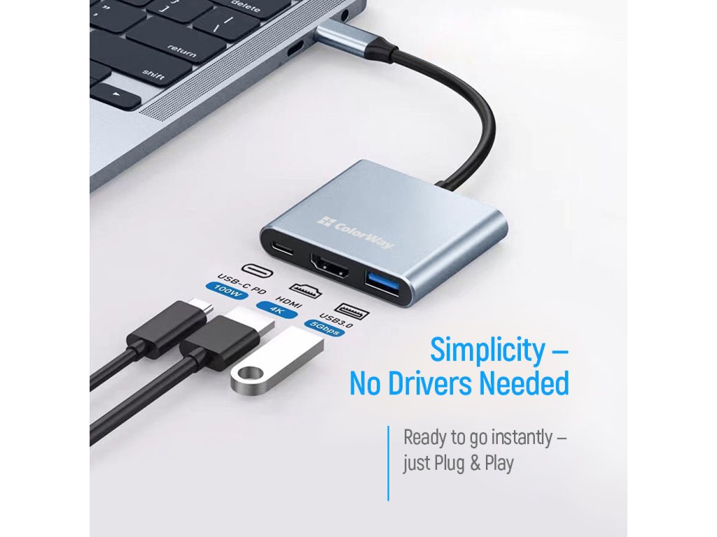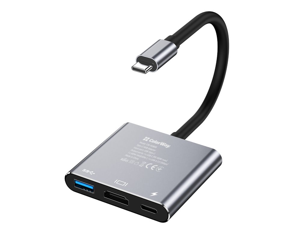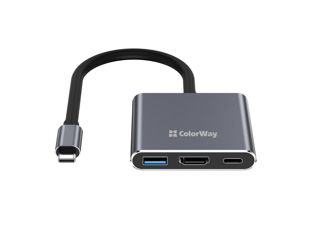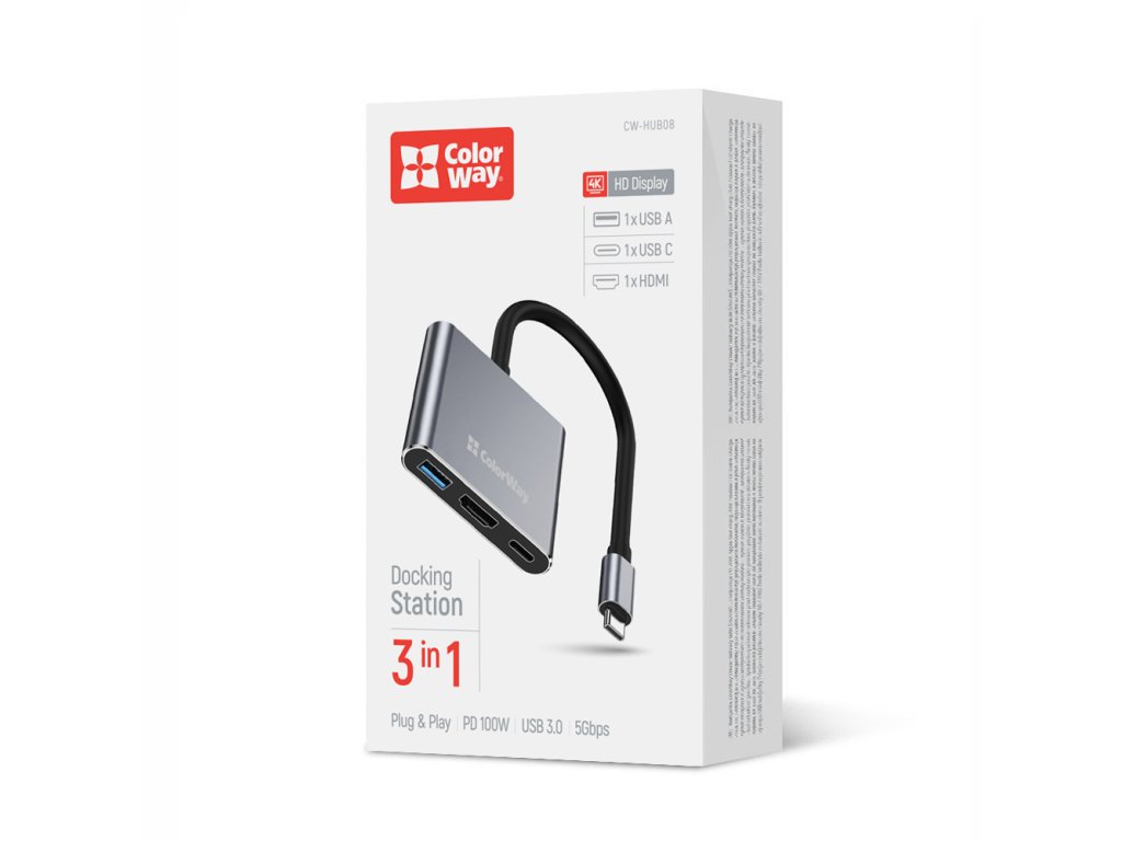 USB Hub (Dokovacia stanica) ColorWay 3-v-1 USB-C PD 100W / USB 3.0 / HDMI 4K (CW-HUB08)