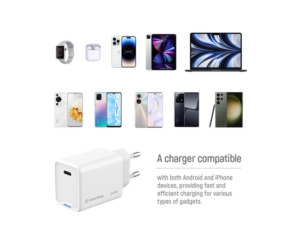 Nabíjačka ColorWay GaN Mini 65W PD PPS USB-C biela (CW-CHS049PD-WT)